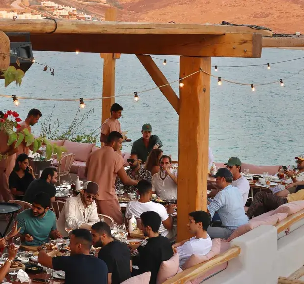 With a view of Fteliá bay, the sounds of our resident DJs and the summer breeze, the three-level restaurant becomes the ideal scenery for a replenishing lunch.